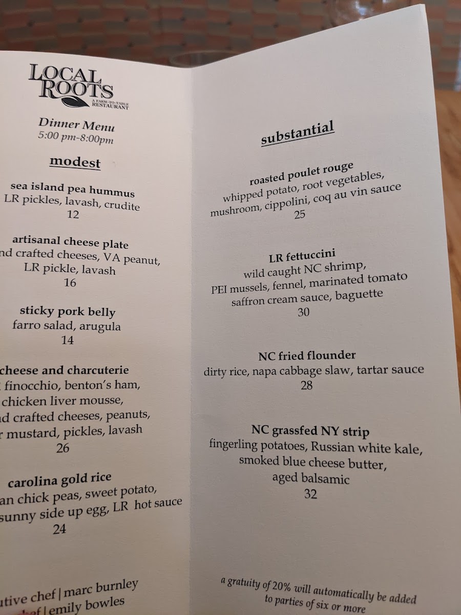 Local Roots Restaurant Menu